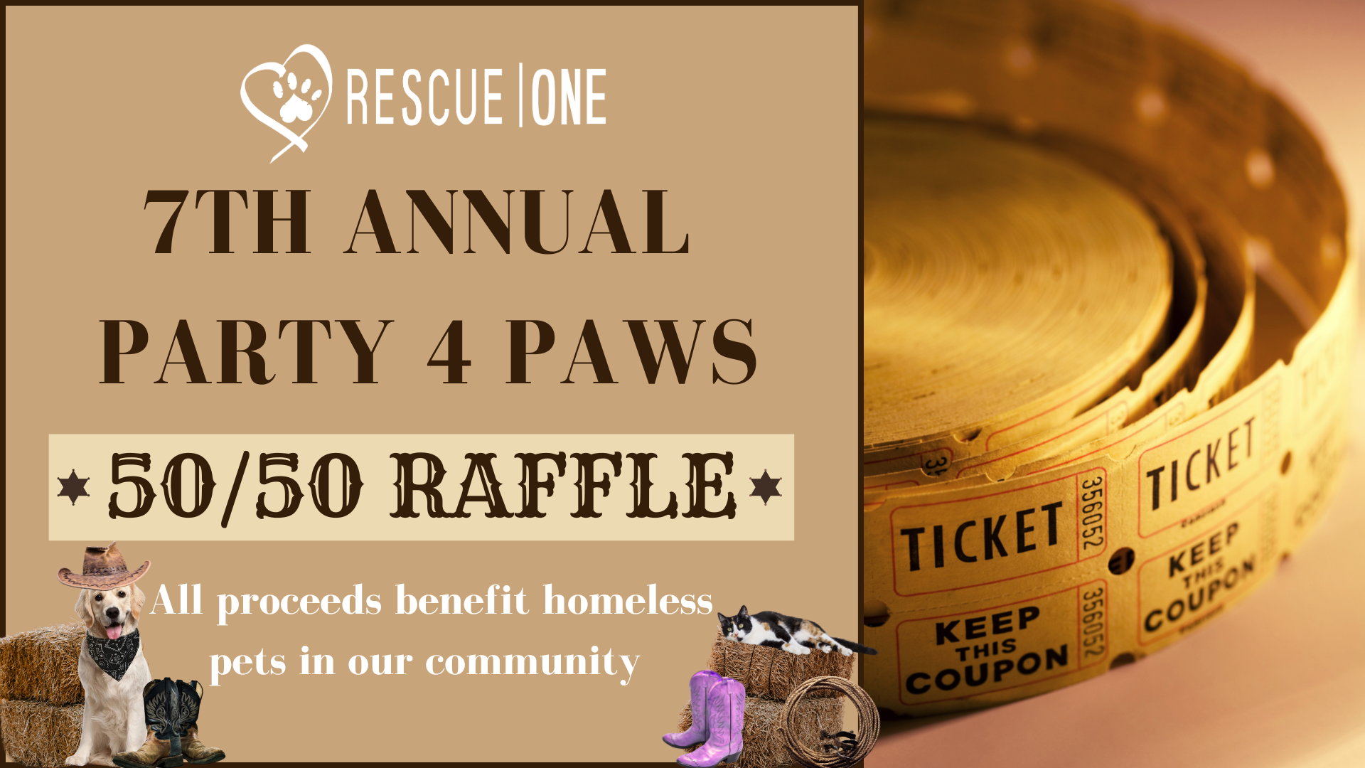 Our 7th Annual Party 4 Paws 50/50 Raffle is here! If you have a heart for animals in need, this is your chance to make a real difference. With Rescue One’s 50/50 raffle, one lucky winner will claim half of the jackpot, and the other half will go toward saving sick, injured, and abandoned pets. Every ticket purchased helps give these deserving animals a second chance at life. Last year the winner’s total was $7,712.50—don’t miss your opportunity to win big while helping transform lives.